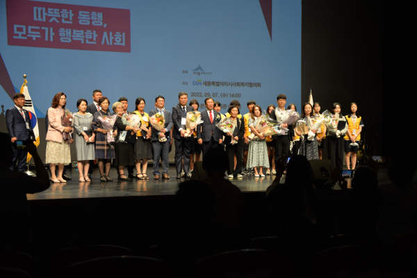 사회복지 유공자 표창에는 총 9부문 포상 훈격으로 △보건복지부 장관표창 △세종시장상 △국회의원상 △시의장상 △ 교육감상 △세종경찰청장 감사장 △한국사회복지협의회장상 △세종시사회복지협의회장상 △세종시사회복지사협회장상 등 총 50명이 수상했다.