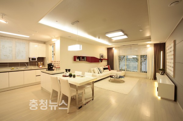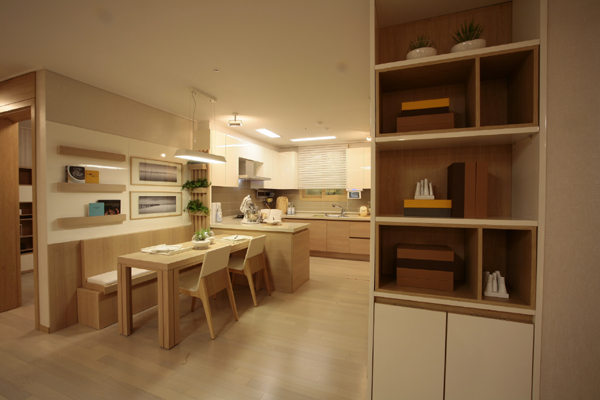 가장 작은 주택형인 70B 타입은 미니멀한 공간에 경쾌한 왈츠의 리듬감이 느껴지는 컬러 포인트를 적용해 생동감 있는 공간을 연출했다. 소형타입이지만 공간활용도를 극대화한 야무진 실속설계가 특징이다.