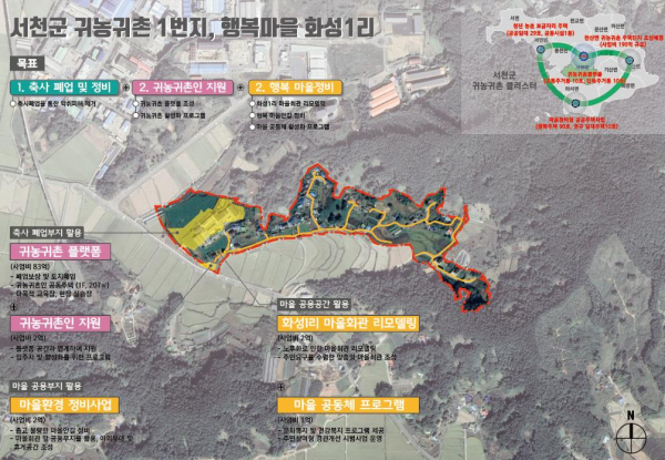 화성지구는 서천읍 화성1리에 인접한 축사로 오랜 기간 문제점이 지적돼 ‘서천군 귀농·귀촌 1번지, 행복마을 화성1리’을 목표로 2026년까지 국·도비 46억, 군비 24억 등 총 70억 원 투입된다.