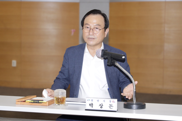 용역사 발표내용을 청취하고 있는 박상돈 천안시장