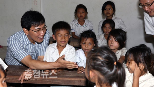 문화·경제 교류 확대를 위해 아시아 3개국 방문에 나선 안희정 충남도지사는 순방 사흘째인 지난 22일 캄보디아 시엠립주에 위치한 스라스랑 초등학교를 찾았다.