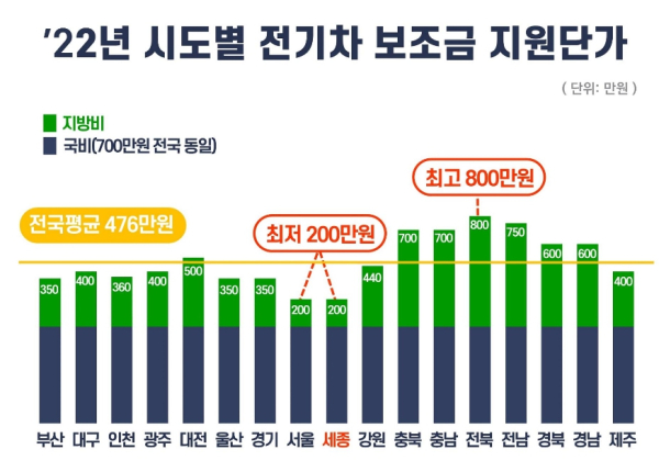 - 세종시 전기차 보조금 지원 전국 평균 수준으로 올려야