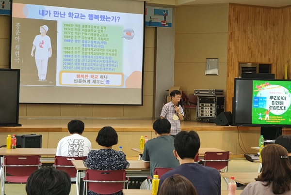 ‘미래교육의 이해’는 여태전 교수(대전 건신대)를 초청해 학생 한 명 한 명의 행복을 찾기 위해 노력하는 교육, 학부모와 학생이 주축이 돼 함께 모색하는 교육과정 설계, 공교육 안에서 불어오는 올바른 교육의 불씨에 대해 이야기를 나누고 희망을 가슴에 품어보는 뜻깊은 시간, 기대되는 대전교육의 미래에 대해 생각하는 시간이 됐다.