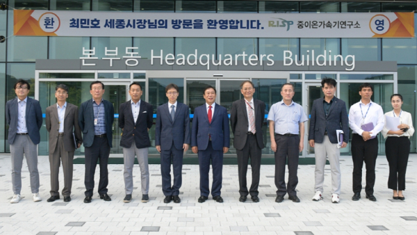 최민호 세종특별자치시장은 지난 16일 대전 국제과학비즈니스벨트에 에 위치한 ‘중이온가속기 연구소’를 직접 찾아 가속기시설을 돌아보며 중부권 중입자가속기 암치료센터 유치전략을 점검했다.