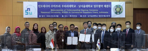 이날 협약식에는 남서울대 윤승용 총장과 수마트라 우타라대학 무랸토 아민 총장을 비롯해 양 대학의 주요 관계자와 주한 인도네시아 대사관 고곳 수하르워토 교육담당관이 참석했다.