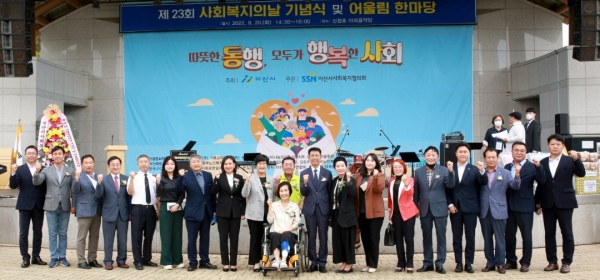 [충청뉴스 박동혁 기자] 충남 아산시가 지난 20일 신정호 야외음악당에서 아산시사회복지협의회 주관으로 협의회 임원과 기관 종사자, 관계자 등 500여 명이 모인 가운데 제23회 사회복지의 날 기념식을 개최했다.