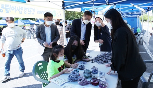 행사는 사진전을 비롯해 짚풀공예, 자개공예, 샌드아트, 패브릭페인팅 등 지역주민이 참여하고 체험할 수 있는 총 23개의 부스를 운영했다. 특히, 우송대 사회복지학과 새마을 동아리 ‘새말’ 은 폐기물인 양말목을 손을 사용하여 소품을 만드는 재활용 업사이클링 공예활동과 팝콘등을 만들어 주는 부스를 운영해 주민들의 관심을 모았다.