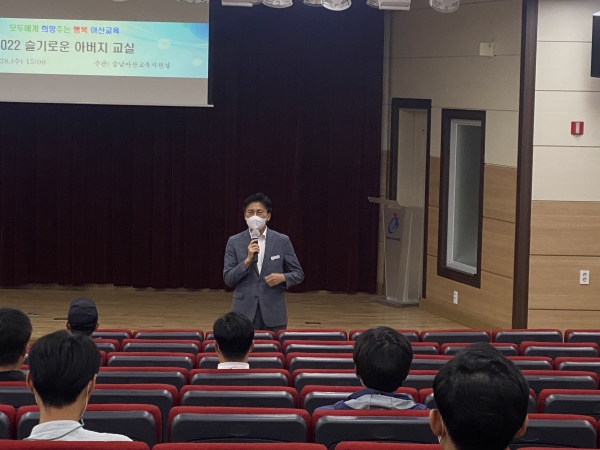 [충청뉴스 박동혁 기자] 충청남도아산교육지원청은 지난 28일 대강당에서 초·중학생 자녀의 아버지 50명을 대상으로 슬기로운 아버지 교실을 개강했다.