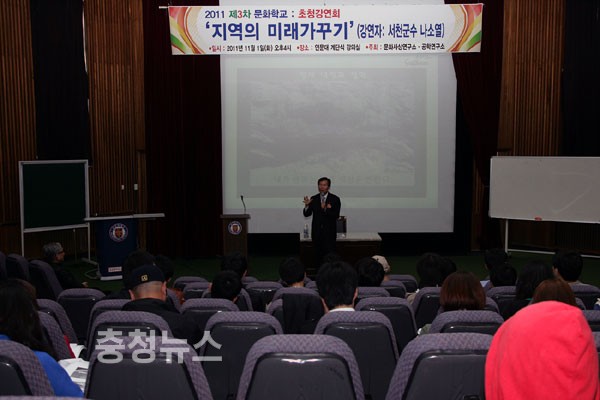 나소열 서천군수는 지난 1일 ‘지역의 미래 가꾸기’라는 주제로 군산대학교 인문대학 소강당에서 대학생 100여명을 대상으로 특강을 펼쳤다.