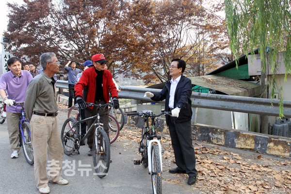 간부공무원들과 엑스포교부터 흑석수영장까지 자전거 타고 시찰