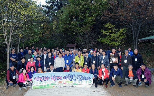 ▲ 염홍철 대전시장과 시민 100여명이 계족산에서 세번째 만남을 가졌다.