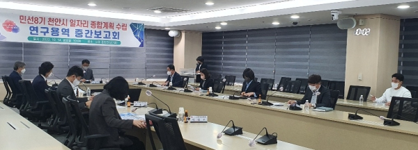 시는 14일 시청 중회의실에서 천안시 일자리 종합계획 수립을 위한 연구용역 중간보고회를 개최했다.