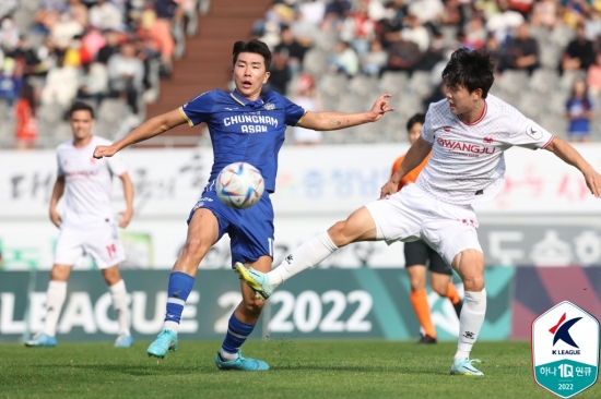 이날 경기를 무조건 승리해야 PO 진출의 희망을 살릴 수 있는 충남아산은 초반부터 강하게 압박하는 플레이를 펼쳤다. 하지만 광주는 강팀답게 경기를 차분히 풀어나가며 이따금 위협적인 장면을 연출했다.
