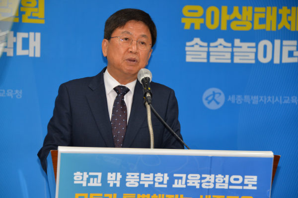 [충청뉴스 최형순 기자] 최교진 세종시교육감은 18일 기자회견을 통해 "금남면 영대리 영대초폐교부지 활용 유아생태체험센터(솔솔놀이터)를 오는 24일 개장한다"고 밝혔다.