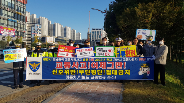 [충청뉴스 박동혁 기자] 충남 천안시는 지난 19일 서북구 천안시청 사거리와 동남구 남부오거리 등에서 교통사고 예방을 위한 민관합동 캠페인을 대대적으로 펼쳤다.