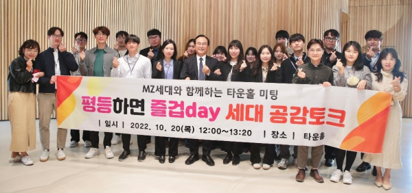 이번 행사는 ‘평등하면 즐겁데이(Day)’라는 이름으로 진행됐으며, MZ세대와 소통의 장을 열어 젠더와 세대를 아우르는 세대별 가치관과 다양성에 대한 이해와 공감으로 유연하고 활기찬 공직 문화를 조성하고자 마련됐다.
