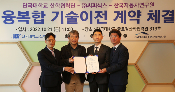 한국자동차연구원도 이날 체결식을 통해 김용은 책임연구원의 차량통신 데이터 수집장치기술을 이전했으며, 우 교수와 ㈜씨피식스 박준일 대표는 기술이전을 기념해 인재육성에 써달라며 단국대에 발전기금 1,000만 원과 500만 원을 각각 전달했다.