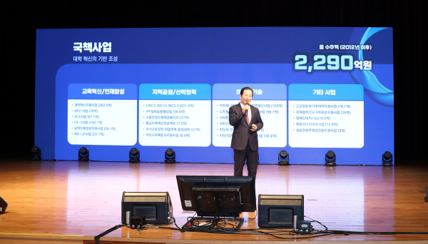 황선조 총장은 비전 선포에서 2012년 이후부터 약 2,300억 원의 국책사업 지원을 통한 탄탄한 교육 재정, 1주기 대학구조개혁평가에서 대전·충남·세종에서 유일한 최우수 A등급을 시작으로 세 차례에 걸쳐 최우수 등급을 획득한 검증된 교육 혁신 및 역량, 선도적인 국제화 역량, 지역과 동반 성장하는 지역 공생 대학 등 그간의 성과를 강조했다.