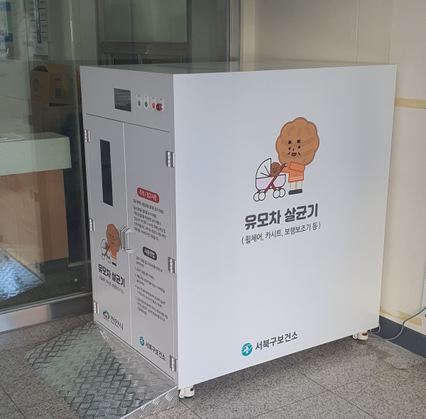 보건소에 따르면 유모차 살균기는 원터치 방식으로 작동 시간은 20초 내외이며, 자외선 살균램프를 활용해 세균과 바이러스를 박멸하고 미세먼지도 제거할 수 있다.