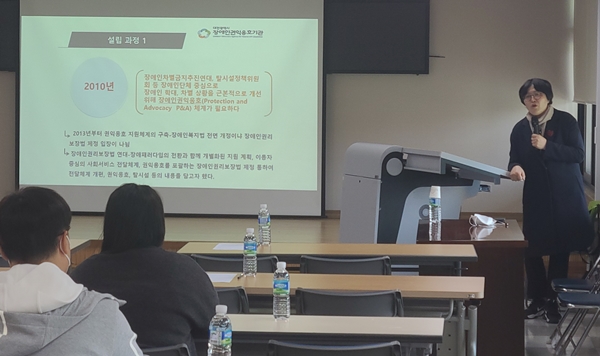 기초 과정의 연수 내용은 ▲장애인 권익옹호의 개념 ▲ 인권의 개념 및 가치 ▲아동 인권 보호의 흐름과 근거 ▲장애학생 인권침해의 다양한 사례 ▲질의 응답으로 이뤄졌다.
