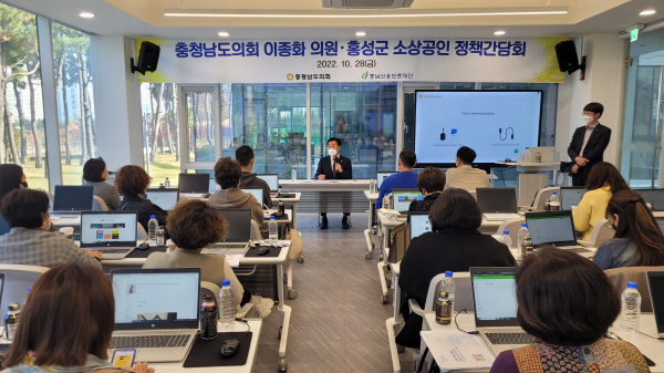 교육 이후 이종화 의원이 참석한 가운데 홍성군 소상공인의 애로사항을 청취하는 정책간담회를 개최했다.