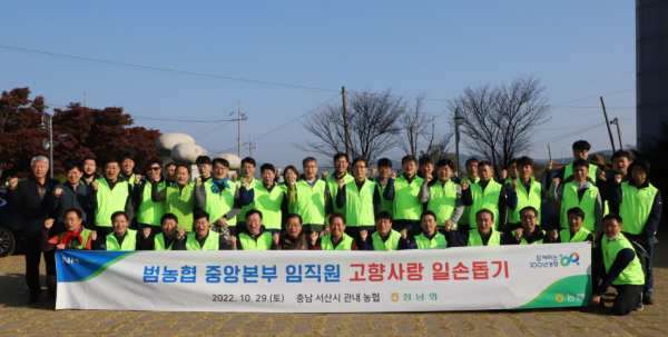 이종욱 본부장은 “본격적인 김장철을 맞아 일손부족으로 농산물 수확에 어려움을 겪고 있다는 소식을 듣고 봉사활동에 나서게 되었다”며 “농협은 수확철 전사적 일손돕기 추진을 통해 김장채소의 적기 수확 및 유통을 돕겠다”고 말했다.