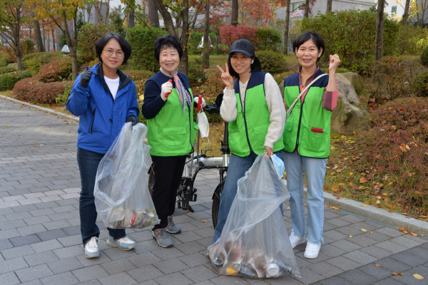 첫째 마당 쓰담 걷기 걸으면서 쓰레기 줍기 행사는 1코스와 2코스를 구분하여 홍한기 동장, 박란희 세종시의회 부의장과 통장협의회 회원, 주민 100여 명이 다정동 주민센터에서 가온 마을 아파트 단지를 순회했다.
