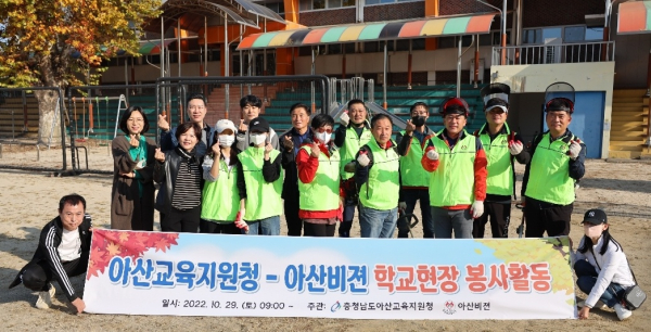 학교 현장 봉사활동 기념사진/아산교육지원청 제공