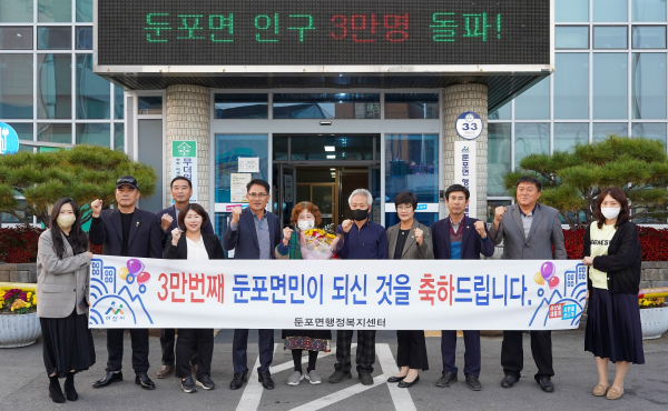 둔포면은 지난 28일 둔포면 행정복지센터에서 최경만 둔포면장, 김희영 아산시의장, 홍순철·김은복 아산시의원, 하재화 이장협의회장, 공기표 주민자치위원장, 김수연 새마을지도자협의회장이 참석한 가운데 인구 3만 번째 주인공을 축하하는 자리를 가졌다.