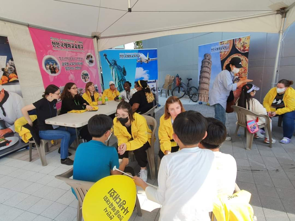 영어 프리토킹존 부스 운영 장면/천안시 제공