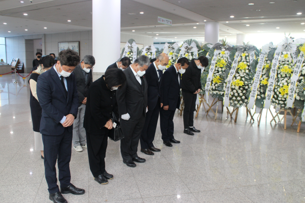 [충청뉴스 김용우 기자] 대전상공회의소 정태희 회장, 신광철강㈜ 홍성호 대표이사, ㈜장충동왕족발 신신자 대표이사, ㈜위드텍 유승교 대표이사 등 회장단과 임직원들은 2일 대전시청에 마련된 이태원 사고 사망자 대전 합동분향소를 찾아 애도의 뜻을 표했다.