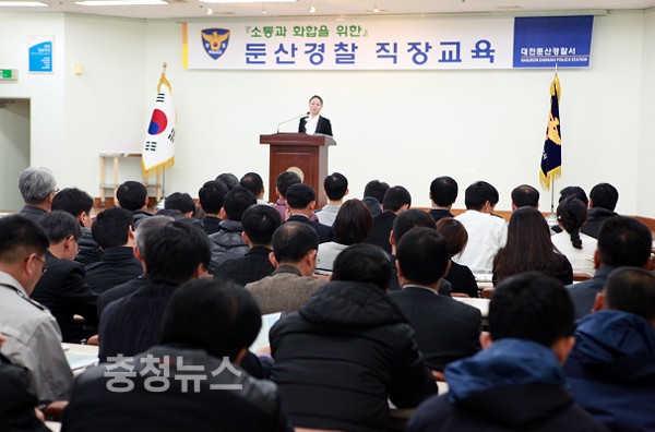 대전둔산경찰서(서장 이병환)는 21일 현장경찰관들의 다문화가족에 대한 이해를 돕기 위해 '둔산경찰 직장교육'의 일환으로 베트남에서 귀화한 이주여성(유미연, 38세)을 초빙해 강의를 실시했다.