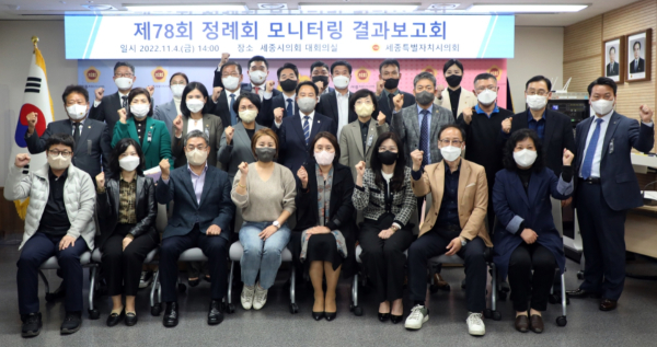 [충청뉴스 최형순 기자] 세종특별자치시의회(의장 상병헌)는 4일 오후 의회 청사 1층 대회의실에서 ‘제78회 정례회 모니터링 결과보고회’를 개최했다.
