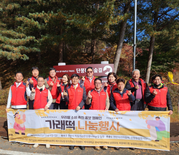 봉사 참여자들은 독립기념관 단풍나무숲길을 찾은 관광객과 시민들에게 가래떡 1,111명분, 진공포장 쌀(500g), 소량포장 쌀, 필기도구 세트, 무릎 담요, 커피, 차 등이 시민들에게 제공됐다.