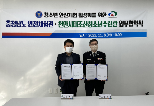 [충청뉴스 박동혁 기자] 천안시태조산청소년수련관은 지난 9일 충청남도 안전체험관과 청소년의 건강한 성장을 위한 업무협약을 체결했다.