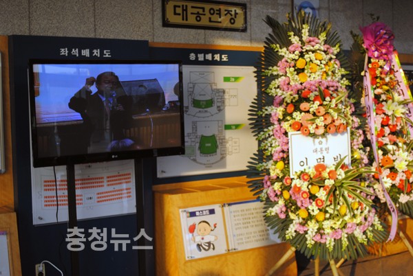 ▲ 이명박 대통령의 화환이 눈길을 끈다.