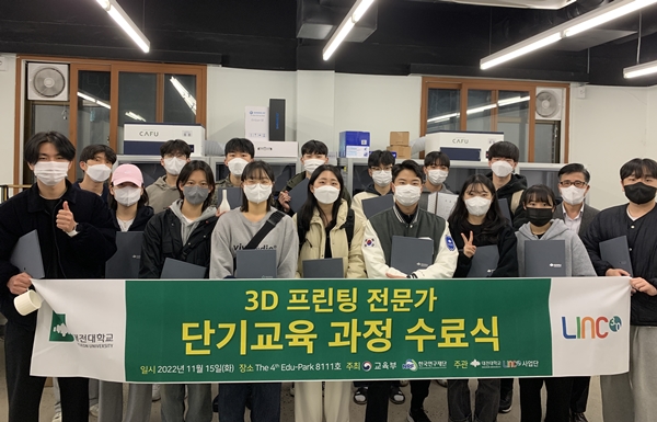 [충청뉴스 이성현 기자] 대전대학교 LINC3.0사업단은 지난달 27일부터 지난 15일까지 진행된 ‘2022년도 2학기 3D프린팅 및 모델링 단기과정 전문가 교육’에 대한 수료식을 개최했다고 밝혔다.