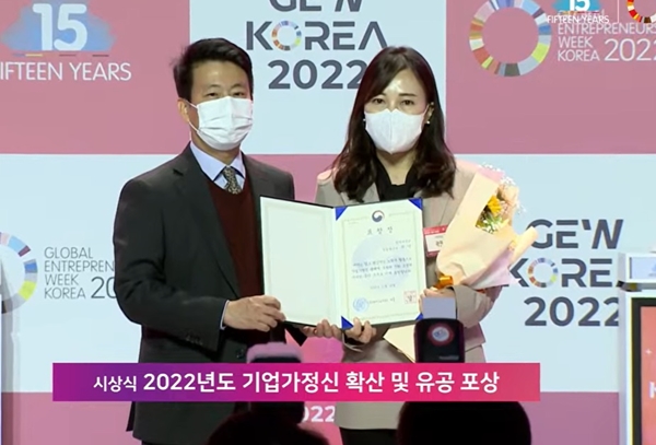 2022 세계 기업가정신 주간 한국행사 시상식. 오른쪽이 한밭대 창업지원단 곽연 선임매니저.