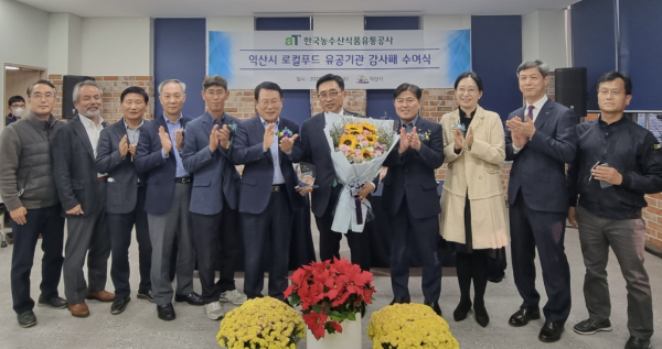 [충청뉴스 최형순 기자] 한국농수산식품유통공사(사장 김춘진)는 16일 전북 익산시(시장 정헌율)에서 ‘농축산물 할인지원사업’을 통해 소비자 물가부담 경감에 기여한 공로로 익산시장으로부터 감사패를 받았다.