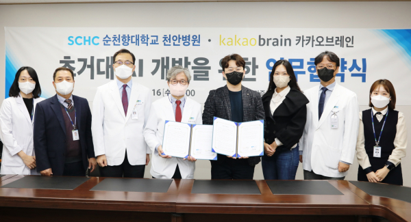 [충청뉴스 박동혁 기자] 순천향대학교 부속 천안병원은 카카오브레인과 지난 16일 병원 회의실에서 ‘흉부 X-ray AI 진단 솔루션 개발’을 위해 공동연구계약을 맺었다고 밝혔다.