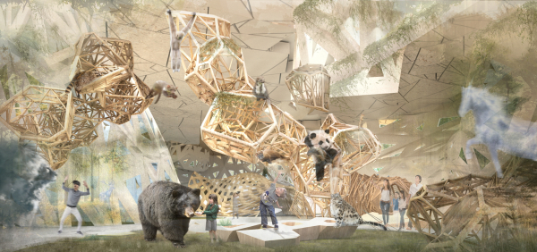 우수상을 수상한 4학년 이승주, 홍예원, 강유진 학생의 작품은 ‘앤데믹 시대, 희귀동물과 만날 수 있는 언택트 문화소통공간’을 주제로 4,000여 종이 넘는 야생 동식물이 서식하는 DMZ의 자연환경과 조화돼 함께 호흡하고 성장해나가면서 희귀동물을 언택트로 만날 수 있는 새로운 체험전시공간 ‘Breathing Veins’를 제안했다.