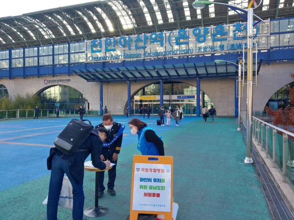 천안아산역에서 서명운동 펼쳐