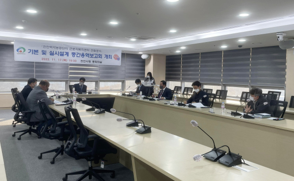 지난 17일 개최된 ‘천안백석농공단지 근로자복지센터 건립공사 기본 및 실시설계 용역 중간보고회' 진행 장면/천안시 제공