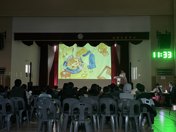 특히, 23일에는 교내 강당으로 극단 예술봄소리가 학교로 직접 찾아와 독서교육과 예술교육을 융합한 그림책 콘서트를 진행했다.