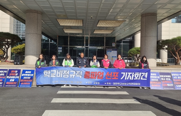 한편 전국학교비정규직연대회의는 전국고육공무직본부, 전국여성노동조합, 전국학교비정규직노동조합 등이 결성한 단체로 올해 사용자인 시·도교육청측과 8차레에 걸쳐 임금교섭을 진행했으나 합의를 이루지 못했다.