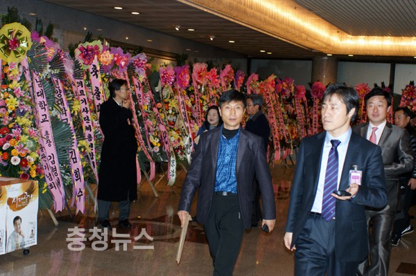 ▲ 많은 축하 화환을 놓기에 홀이 부족해 길목에 까지 늘어서기도 했다.