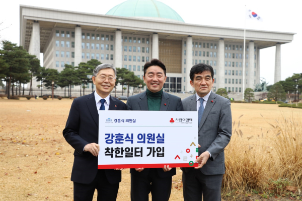 ‘희망2023나눔캠페인’은 매년 12월 1일부터 1월 31일까지 실시하는 사랑의열매 연말 집중 모금캠페인으로, 강 의원실은 기부문화 확산을 위해 본 캠페인에 앞서 착한일터에 가입하기로 한 것으로 알려졌다.