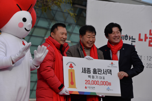 이어 진행된 성금 전달식에서는 타이어 뱅크 김정규 회장, 농업회사 법인 영신 임헌완 대표, 비전세미콘 윤통섭 대표, 농협세종본부 김기관 본부장, 한국중부발전본부 이진규 본부장과 개인 및 법인 기부자의 성금 릴레이가 이어져 나눔의 열기를 한층 고조시켰다.