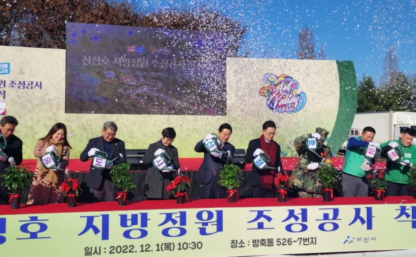 아산시는 1일 방축동 인근에서 신정호 지방정원 조성사업 착공식을 개최했다.