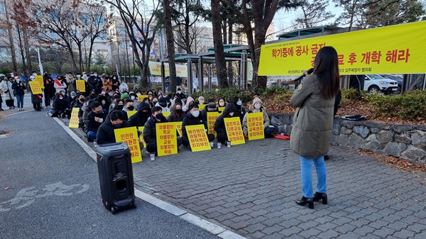 이들은 "아이들을 내년 1학기부터 수용해야 하는데도 교육청은 이제야 모듈러 교실 설치를 위한 입찰을 진행했다"며 "학기가 진행 중인 23년 5월말까지 공사가 완료되는 일정을 계획하고 있다"고 설명했다.